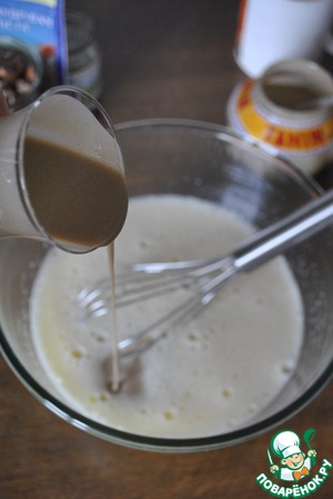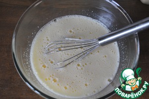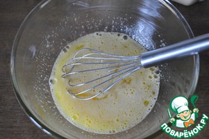 Яйца перемешиваем с сахаром венчиком, где-то 3 мин., пока сахар не растворится.