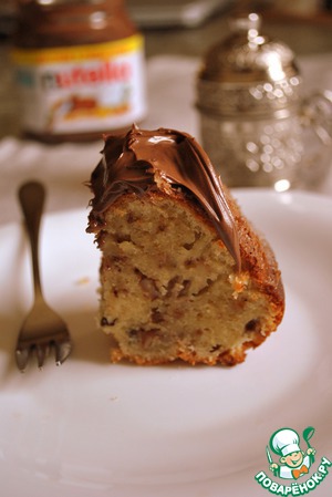 Очень сытный, ароматный и вкусный!!! На следующий день кекс становится еще вкуснее. И, как говорят на Украине, "як мед - так ложкою" поэтому я помазала нутеллой.