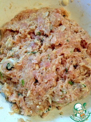 Подготовить продукты для фарша - перекрутить мясо индейки, добавить лук, чеснок, батон. Я использовала крупную сеточку для мясорубки, фарш получился почти как рубленный.