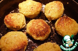 Формируем и обваливаем в панировочных сухарях котлеты. Обжариваем на маленьком огне.