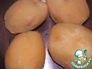 Картофель отварить в кожуре, очистить еще горячим и размять его в пюре.