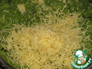 Твердый сыр натереть на мелкой терке и добавить к картофелю.