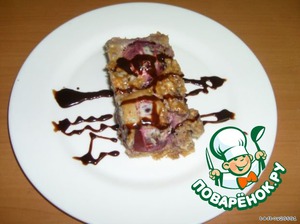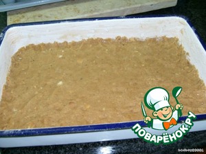 На форму для торта, с предварительно смазанными маслом краями, выкладываем тесто из печенья.