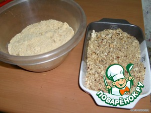 Орехи жарим и измельчаем в блендере в крошку, также из печенюшек делаем муку.