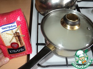 Для начинки я использовала рис "МИСТРАЛЬ Кубань". Варим рис 10 мин. до полуготовности.