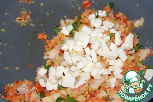 Чуть охлаждаем и добавляем фету, нарезанную мелкими кубиками