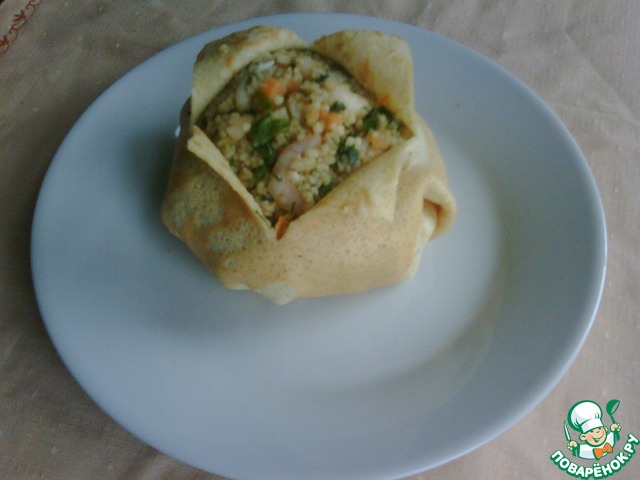 Рецепт «Салат с креветками, овощами и кускусом "Вещмешок"»: