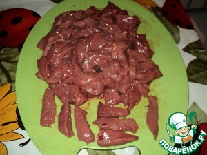 Удаляем пленку, жилки и режем на небольшие кусочки