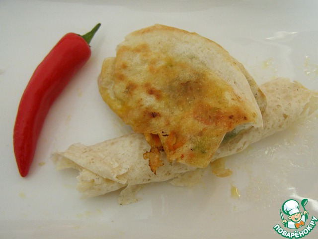 Заворачиваем блинчиком. На сковороде разогреваем масло и на сильном огне быстро поджариваем с двух сторон наши роллы.
