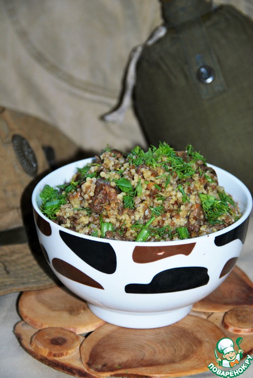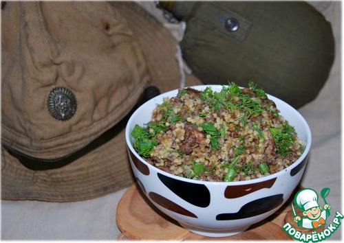 Это старый рецепт каши, известный ещё в России до революции и популярный у извозчиков. Её готовили в трактирах, вместе с щами и водкой (60 мл), она стоила один алтын (три копейки). Я привожу этот рецепт, несколько адаптированный под современные условия. Не посчитайте за кощунство, но этой кашей я хочу помянуть всех воинов, выполняющих свой долг в "горячих" точках. Таких много среди друзей нашей семьи, лучший друг мужа так и не вернулся с Афгана, пропал без вести. Много однополчан воевали в Чечне. Именно каши практически всегда были единственной пищей военнослужащих во времена военных действий.