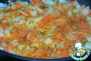 На растительном масле обжариваем лук и морковь. -