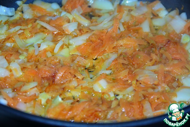 • Морковь натираем на тёрке, лук нарезаем кубиками.