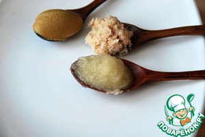 • Добавляем мёд, перемешиваем, слегка карамелизируем, далее добавляем горчицу, хрен, соль.