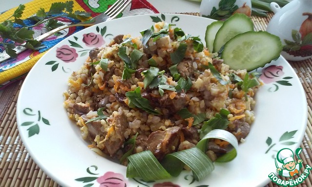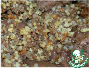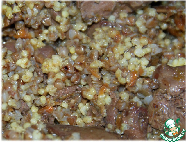 Божественная каша! Союз 2-х видов круп и всех компонентов придает этому блюду богатый вкус!Сердечек у меня не оказалось, готовила только с куриной печенью. Спасибо большое за рецепт!