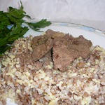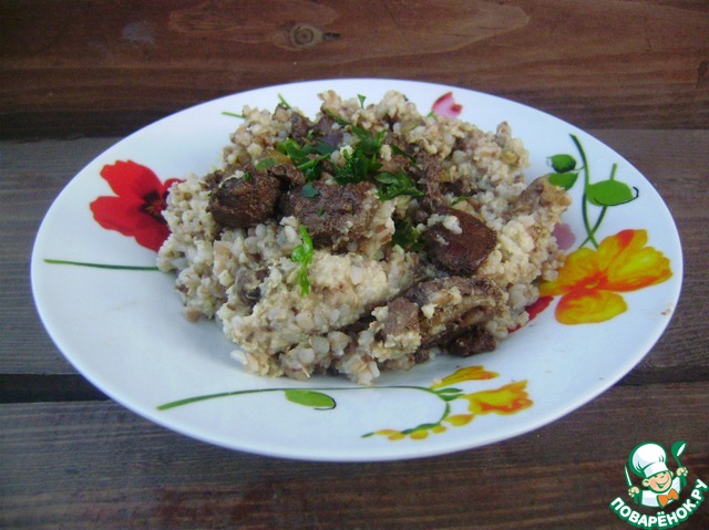 Люблю гречневую кашу с ливером. Но в первый раз добавила к гречневой крупе пшено. Получилось очень вкусно. В этом варианте у меня нет печенки (не любим ее вареную), только куриные сердца и желудки. Желудки готовятся дольше, чем печенка и сердца, поэтому время для их тушения увеличила, а сердца добавила примерно за 20 мин до окончания тушения желудков. Получилось очень вкусно. Светочка, спасибо за рецепт!