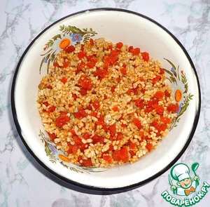Рис отварить в большом количестве воды до готовности, даже немного переварить, но чтобы рис не слипался, варить 20-25 минут. С риса хорошо слить воду.
