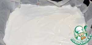 Два яйца, взбиваем с ложкой сахара и ванильным сахаром, до образования пышной пены. Сливки я тоже немного взбила но не до пиков, перемешиваем сливки и яичную пену и выливаем поверх запеканки.