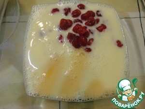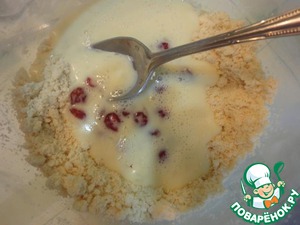 Яично-молочно-ягодную смесь выливаем в углубление в муке.