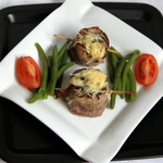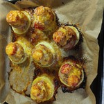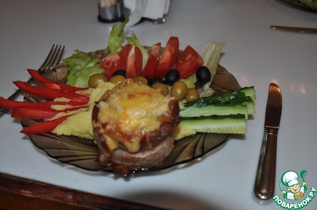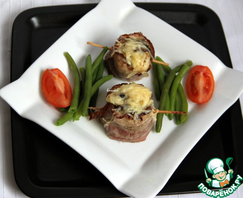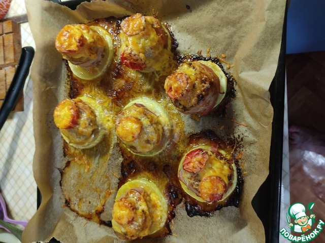 [+4]Я добавила ложку мелконатёртого пармезана во внутрь фарша, а сверху присыпала смесью сыров для запекания. Тефтельки у меня не очень плотные получились при формовке, но бекон их смог удежать и выстоять