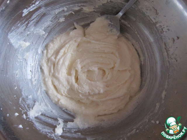 Сливочное масло и творог взбить миксером около 2-3 минут.