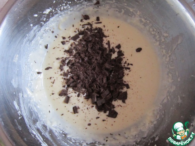 Добавляем шоколад, порубленный на кусочки.