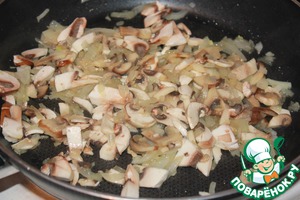 Орехи измельчите в блендере. Лук, чеснок и шампиньоны мелко нарежьте, обжарьте на оливковом масле до готовности.