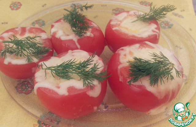 Быстрое в приготовлении, радующее глаз вкусное блюдо. Можно подавать и в качестве гарнира к рыбе, курице. Для тех, кто любит яичницу с помидорами. Мне очень нравится такой вариант подачи (и его скорость приготовления в том числе!). Исключительно хороши такие яично-сырные помидорки с теплыми тостами, слегка смазанными сливочным масличком! Приятного аппетита!!!