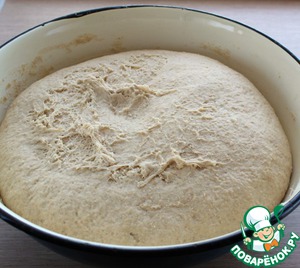 Сформировать из теста 2 шара, накрыть и оставить на подъем на 1,5 ч.