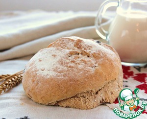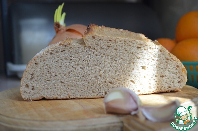 Выпекать в разогретой до 240 градусов духовке 35-40 минут. Проверить готовность, постучав по нижней корочке - если звук глухой, хлеб готов! -