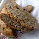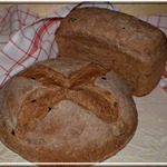 [+4]Добавка изюма и грецких орехов очень гармонична, режется прекрасно, в общем - очень вкусный и натуральный хлебушек !