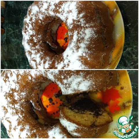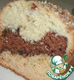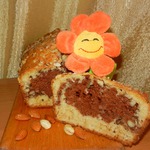 Я сверху белое тесто чуть присыпала орехами. Затем кекс отправить в ЗАРАНЕЕ разогретую духовку. Выпекать при темп.170 (не более 180 гр. С), не менее 50 мин. Готовность проверять дерев. палочкой.