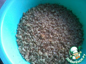 Орехи измельчить в блендере, перемешать с корицей и ложкой сахара