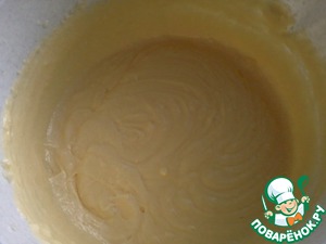 Мягкое масло слегка взбить миксером, затем добавить сахар и ванилин и все хорошо взбить. Затем по одному добавлять яйца, каждый раз хорошо взбивая миксером.
