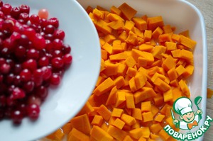 • Сверху на тыкву выкладываем хорошо промытую клюкву.