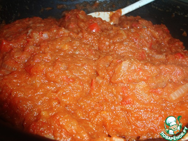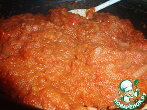 Измельчить блендером или просто мелко нарезать баклажан, перец и томаты. Я использовала консервированые томаты, со свежих нужно снять шкурку, обдав их предварительно кипятком.