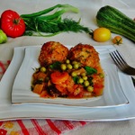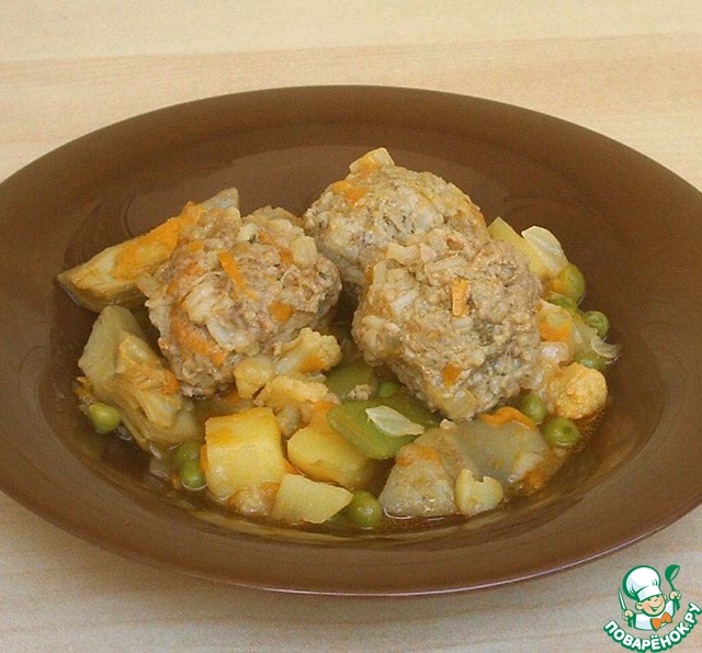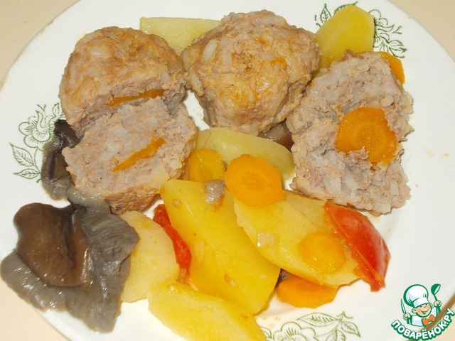 Сформировать фрикадельки, в каждую положить по кусочку моркови (я брала из зажарки).