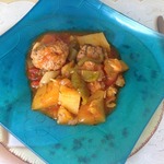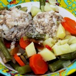 Из овощей были:лук,помидор,морковка,черешковый сельдерей,тапинамбур,артишок,картошка,стручковая фасоль,кабачки.
