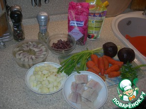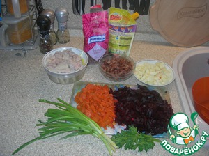 Готовим ингредиенты: предварительно отвариваем свеклу, морковь, картофель.