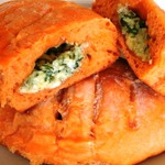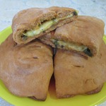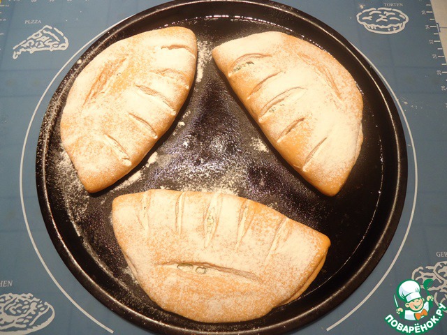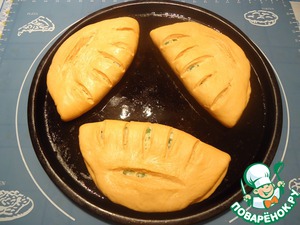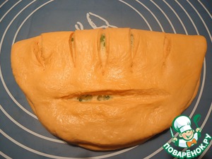 Складываю тесто (не защипываю и не прижимаю). Острым ножом делаю надрезы, но только по верхней половине теста, чтобы при выпечке не вытекла начинка.