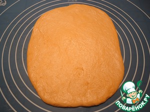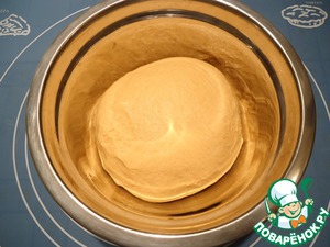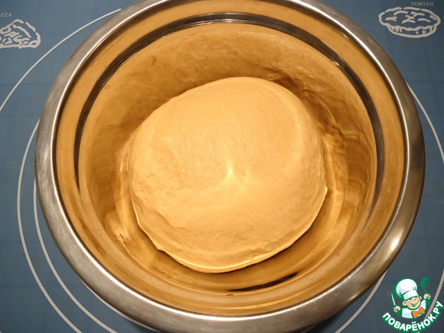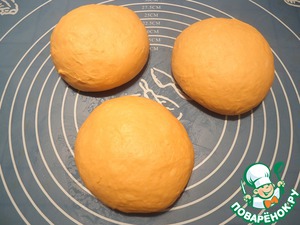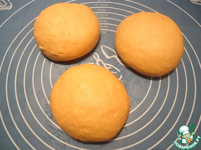 Тесто уминаю, делю на три равные части, накрываю и даю еще немного подняться.