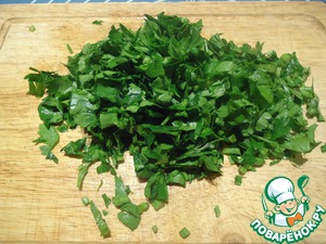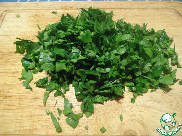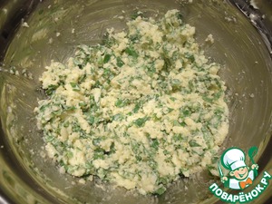 Смешиваю измельченный чеснок, сыр, петрушку, размягченное сливочное масло, соль. Начинка готова.
