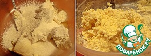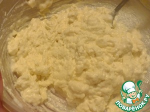 Теперь вводим белки в творожно- желтковую массу: сначала одну треть, плавно перемешиваем, а затем все остальное, помешав не менее аккуратно.