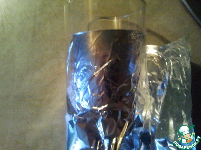 Снимаем со стакана, аккуратно подворачиваем краешки фольги (около 0,5 см) вовнутрь, чтобы соединить края. Формочки готовы.