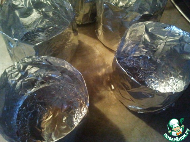 Итак, отрываем куски фольги по количеству порций (у меня 7 штук) примерно по 20-25 см. -