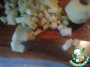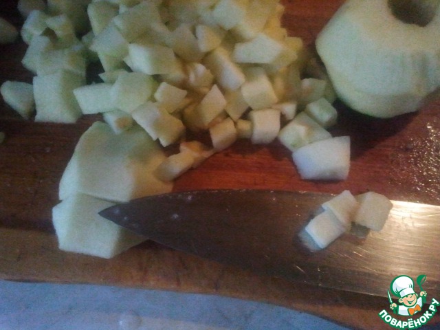 Яблоки режем мелкими кубиками.