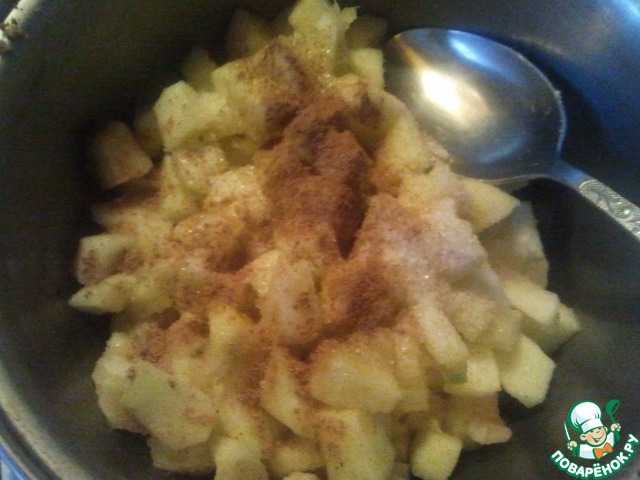 Поливаем лимонным соком, добавляем 1 ст. ложку сахара, немного корицы и мускатного ореха.