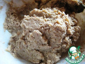 Все тщательно перемешать, оставить на 20 минут. Тесто должно хорошо лепиться и не рассыпаться, если сухое, то добавить еще кефира.