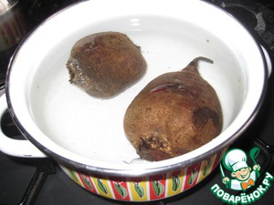 • Свеклу положить в кастрюлю с холодной водой и поставить вариться до полной готовности (не чистить). Также отдельно отварить картофель в мундире.