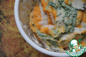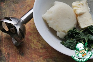 Шпинат размороженный (обдать кипятком), манную кашу и ещё 50 г. масла превратить во второй вид паштета. Шпинат, я считаю более самодостаточным продуктом, поэтому сюда я чеснок не добавляю, но можно!