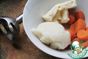 Морковь, манку, последние 50 г. масла и чеснок сново измельчить блендером. Так же можно добавлять немного свежего острого перца, получится ещё пикантнее, под крепкие напитки.